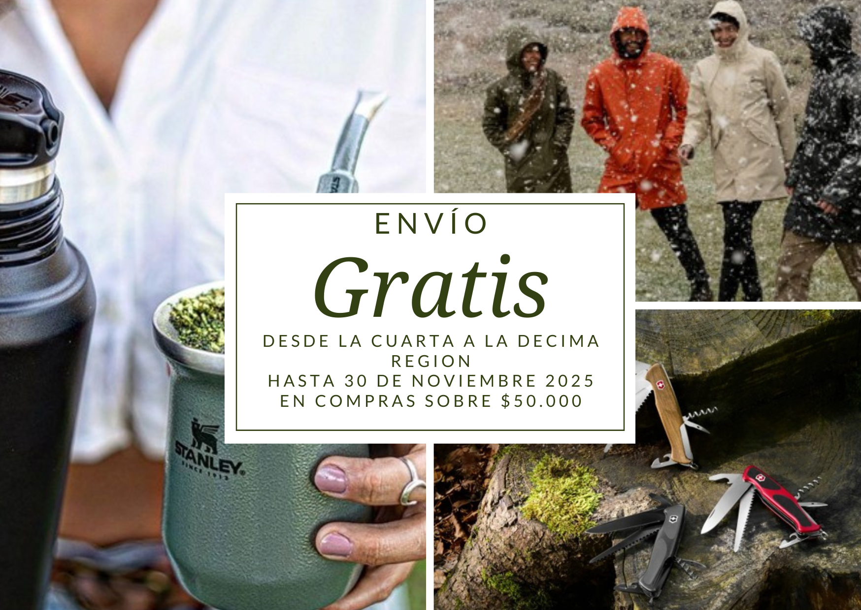Gratis por compras sobre $50.000 desde la Decima a la Cuarta región. Productos seleccionados.